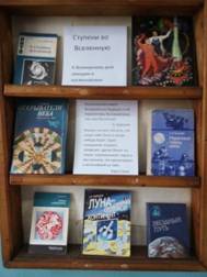 Информационная полка ко Дню космонавтики в Степновской сельской библиотеке